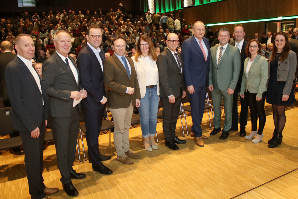 Unter diesem Motto veranstaltete der Kreisverband Borken des Westfälisch-Lippischen Landwirtschaftsverbandes e.V. am 07.01.2024 seinen Jahresverbandstag in der Stadthalle in Ahaus. Kreisverbandsvorsitzender Markus Weiß und Geschäftsführer Jörg Sümpelmann begrüßten fast 500 Teilnehmer und Gäste aus Landwirtschaft, Politik, Verwaltung, Wirtschaft und Banken. Festredner zu dem Thema war Joachim Rukwied, Präsident des Deutschen Bauerverbandes. In seiner kämpferischen Rede ging er auf die vergangenen Entwicklungen in der Landwirtschaft, auf die Demoveranstaltungen im letzten Jahr und auf die Zukunftsperspektiven ein. Mit Blick auf die Bundestagswahlen und die anwesenden Politiker forderte er u.a. Bürokratieabbau, Verbindlichkeit und langfristige Planbarkeit für die Landwirtschaft. In der sich anschließenden Talkrunde tauschte er sich auf der Bühne unter anderem mit dem Hauptgeschäftsführer der Kreishandwerkerschaft Borken, Daniel Janning, zu diesen Themen aus. Dabei wurde deutlich, dass das Handwerk und die Landwirtschaft in fast allen Belangen vergleichbare Sorgen, Problemstellungen und Forderungen an die Politik hat, da auch hier Bürokratie, z.B. im Bereich Dokumentation und Verlässlichkeit, siehe Investitionsförderungen bei Heizungen, wichtige Themen sind. Bauernverband und Kreishandwerkerschaft Borken betonten, dass sie auch weiterhin den guten Austausch und die vertrauensvolle Zusammenarbeit fortsetzen wollen.