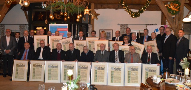 Insgesamt 19 Handwerksmeister aus acht verschiedenen Berufen wurden am 30.11.2016 in einer Feierstunde in dem Landgasthof Haarmühle in Ahaus-Alstätte für ihr 50- bzw. 60-jähriges Meisterjubiläum geehrt.