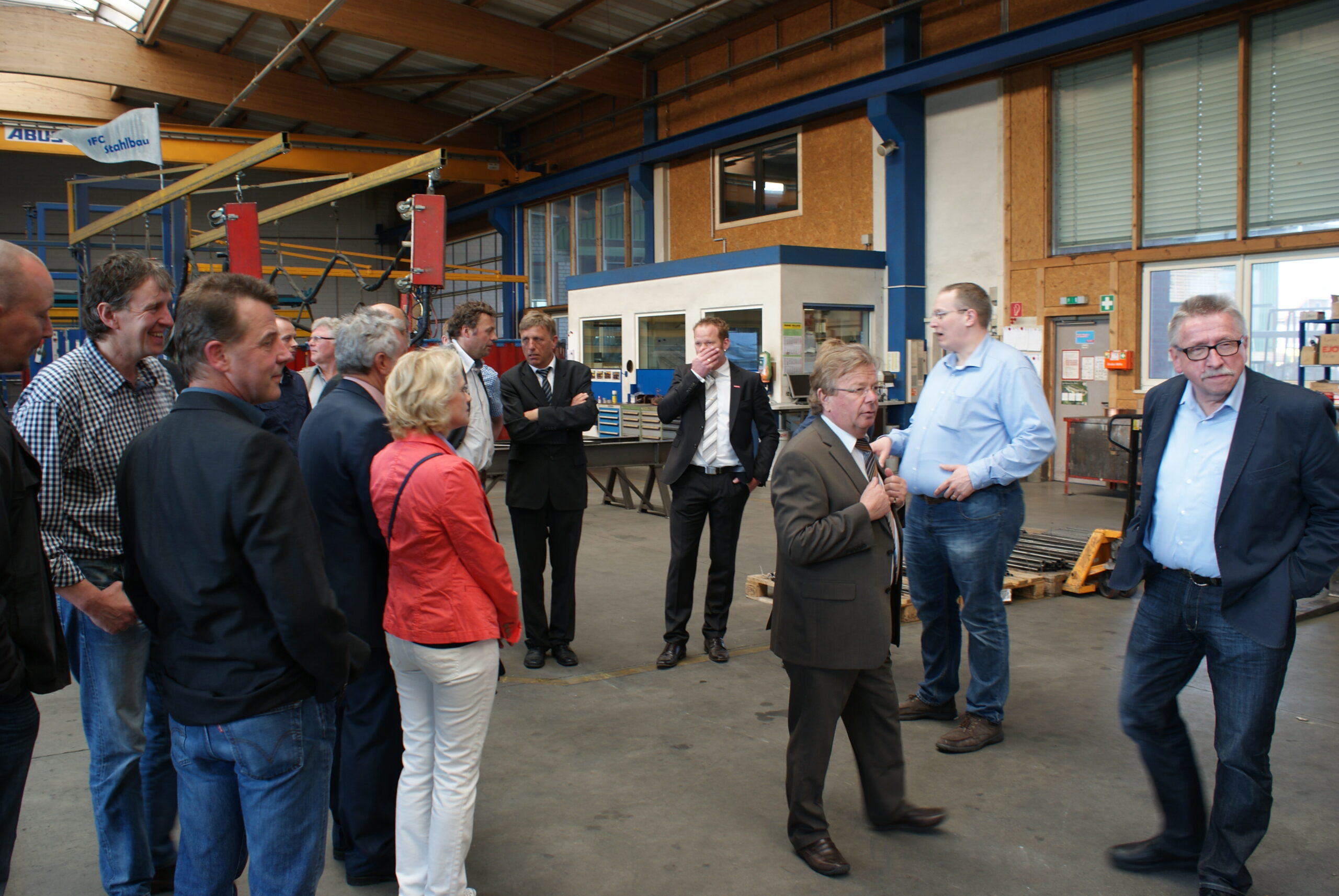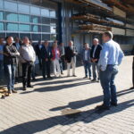 Sven Brüninghoff stellte seine Firma zunächst in Wort und Bild vor und in der anschließenden Betriebsbesichtigung konnten sich die Anwesenden davon überzeugen, wie sich das vor 40 Jahren gegründete Holzbauunternehmen zu einem expandierenden Unternehmen entwickelt hat.
