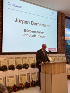 Persönlichkeiten aus Wirtschaft und Politik, darunter der Vizepräsident Jürgen Kroos von der Handwerkskammer Münster, der Bürgermeister der Stadt Rhede, Jürgen Bernsmann, der als Festredner fungierte, die stellvertretenden Bürgermeisterinnen der Städte Bocholt, Borken und Isselburg, Frau Elisabeth Kroesen, Frau Claudia Biela und Frau Martina Neckritz, der Regionaldirektor der IKK classic Münster, Jörg Baly, Nico Kamp von der Signal Iduna sowie der Kreishandwerksmeister Günther Kremer und der Hauptgeschäftsführer Daniel Janning von der Kreishandwerkerschaft Borken, nahmen an der Ehrung teil.