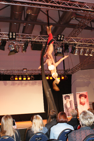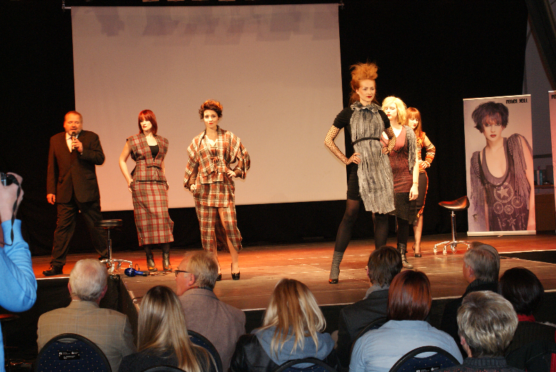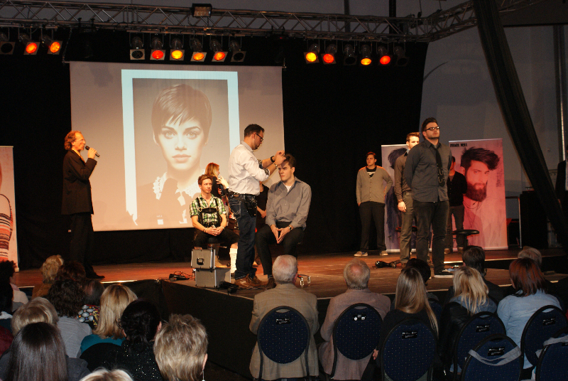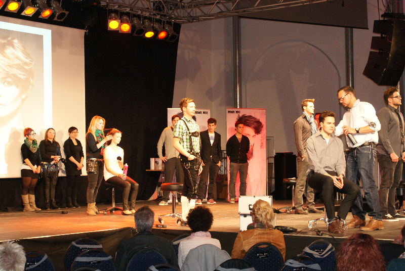 Sowohl bei den Damen- als auch bei den Herrenmodellen wurde live auf der Bühne geschnitten, geföhnt, gewellt und gefärbt. Das Kompetenzteam der Innung konnte so eindrucksvoll demonstrieren, welch haarige Kunstwerke im Trend der Zeit liegen – alltagstauglich aber auch für den großen Auftritt geeignet. Fetzige Musik und eine Beamerpräsentation der aktuellen Trends im Hintergrund machten Lust auf mehr.
