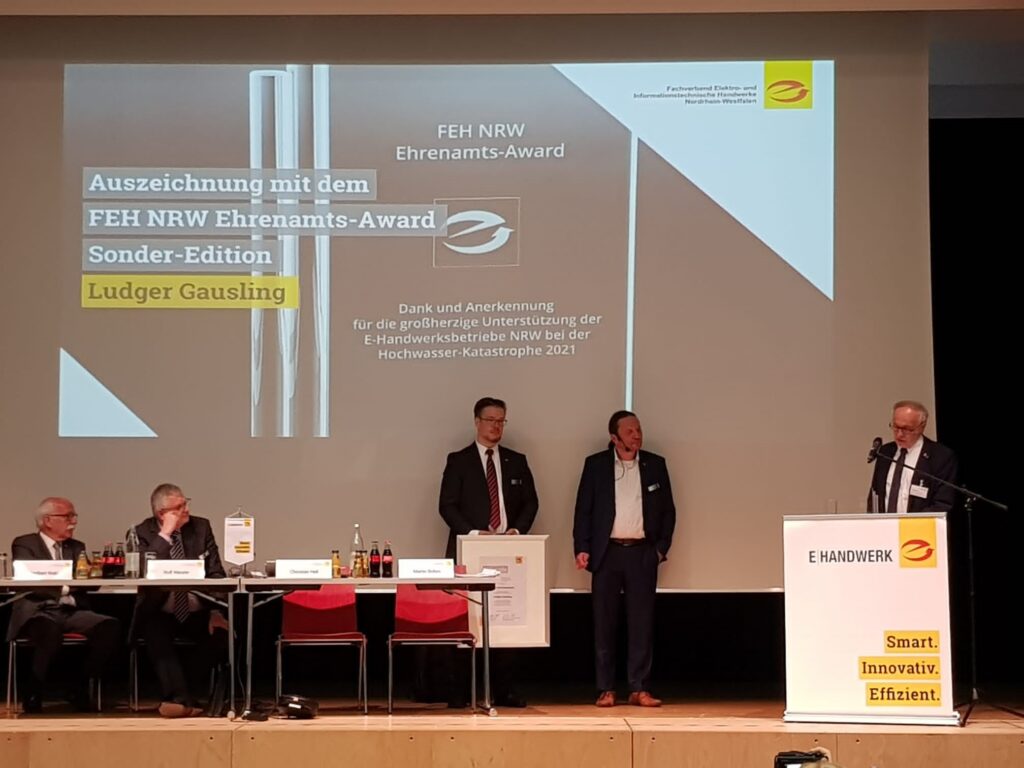 Die „Sonderedition des Ehrenamtsawards“ erhielt heute Ludger Gausling, Ehrenobermeister der Elektroinnung Ahaus, für sein Engagement und seine Spende in Höhe von 1 Million Euro für die Berufskollegen der Flutopfer im Ahrtal.