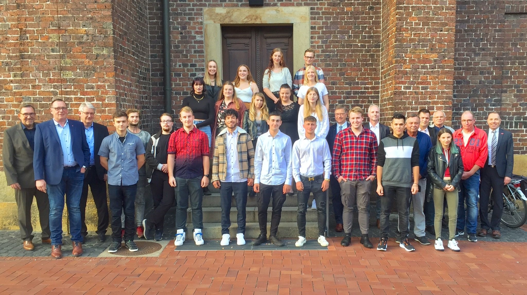 Nach erfolgreichem Abschluss und Bestehen der Gesellenprüfung im Maler- und Lackiererhandwerk hat die Innung Ahaus am 24.09.2021 25 junge Facharbeiterinnen und Facharbeiter in den beiden Berufsbildern des Maler- und Lackiererhandwerks aus der Winter- und Sommer-Gesellenprüfung 2020/21 in der Gaststätte Franke in Altstätte traditionell feierlich losgesprochen. Helmut Witte konnte als Obermeister der Maler- und Lackierer-Innung Ahaus zahlreiche Ehrengäste begrüßen: Ehrenobermeister Heinrich Ostendorf, Regional-geschäftsführer Jörg Baly von der IKK classic und den Leiter der Agentur für Arbeit, Johann Meiners sowie Daniel Janning als Geschäftsführer der Kreishandwerkerschaft Borken und Kreishandwerksmeister Günther Kremer, der die Festansprache hielt.