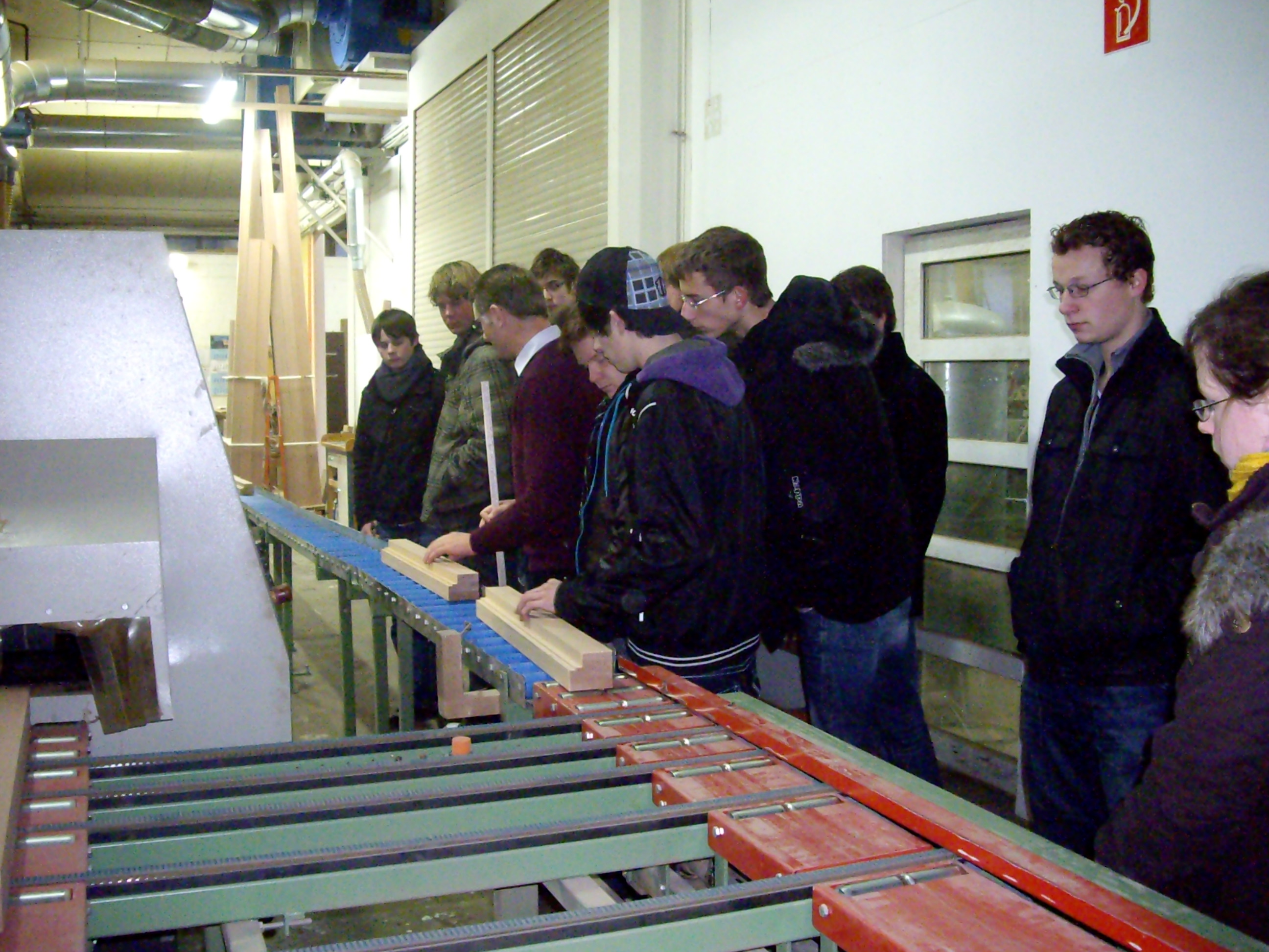 Im Dezember besuchten die 30 angehenden Tischlergesellen des Berufskollegs Borken im Rahmen des Blockunterrichtes das Traditionsunternehmen Josef Baumeister GmbH in Borken. Nach einer herzlichen Begrüßung von Herrn Alfons Baumeister und Herrn Werner Fellerhoff ging es geschwind in die gut geheizten Produktionshallen. Beginnend mit der modernen CNC gesteuerten Holzfensterfertigung, ging es über die Lackierräume in die erste Montagehalle. Hier standen massive Holzfenster und Haustüren zum Beschlageinbau bereit. Nach vielen Fragen und Erläuterungen zog es die interessierten Schüler und Schülerinnen weiter zur Kunststoffabteilung. Auch hier werden mittels vernetzten und rechnergestützten Fertigungsanlagen individuelle Fenster und Haustüren gefertigt. Beeindruckend ist jedes Mal die Präzision mit der die Bauelemente produziert und vormontiert werden. Selbstverständlich wurde auch die Metallabteilung besucht und die Herstellung von Aluminiumelementen begutachtet.