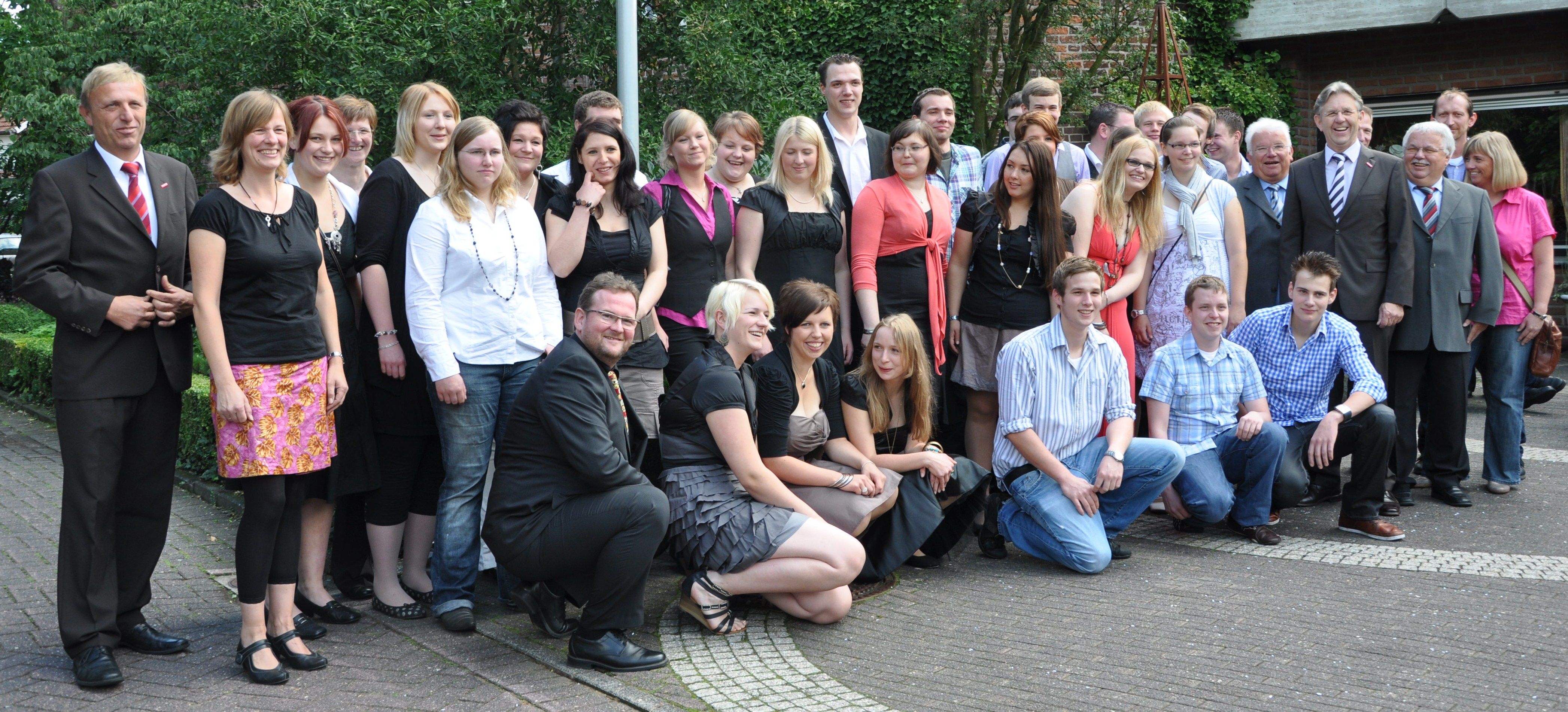Im Beisein von Hans Hund, stellvertretender Kreishandwerksmeister und Vizepräsident der HWK Münster und Christoph Bruns, Hauptgeschäftsführer der Kreishandwerkerschaft Borken sowie zahlreichen Ausbildungsbetrieben, Eltern und Freunden wurden die jungen Fachverkäuferinnen und Gesellen aus ihrer Lehrzeit feierlich losgesprochen.