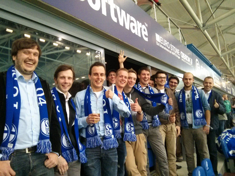 Sich persönlich kennen und Freundschaften pflegen erleichtert nicht nur den Umgang miteinander im privaten, sondern auch im beruflichen Bereich. Aus diesem Gedanken heraus entstand die Initiative der Kreishandwerkerschaft Borken, die nächste Generation der Jungunternehmerinnen und Jungunternehmer im Handwerk miteinander zu vernetzen. Eine erste Zusammenkunft erfolgte ganz unkonventionell am 11.04.2014 auf Schalke. Der Führungsnachwuchs im Handwerk konnte nicht nur einen 2:0 Sieg über Eintracht Frankfurt feiern, sondern gleichzeitig im lockeren Ambiente des „blau-weißen Wohnzimmers“ von Tobit.Software persönliche und geschäftliche Kontakte aufbauen bzw. intensivieren. Im Namen aller Teilnehmer bedanken wir uns bei der Fa. Tobit.Software und deren Team ganz herzlich, die dies ermöglicht haben!