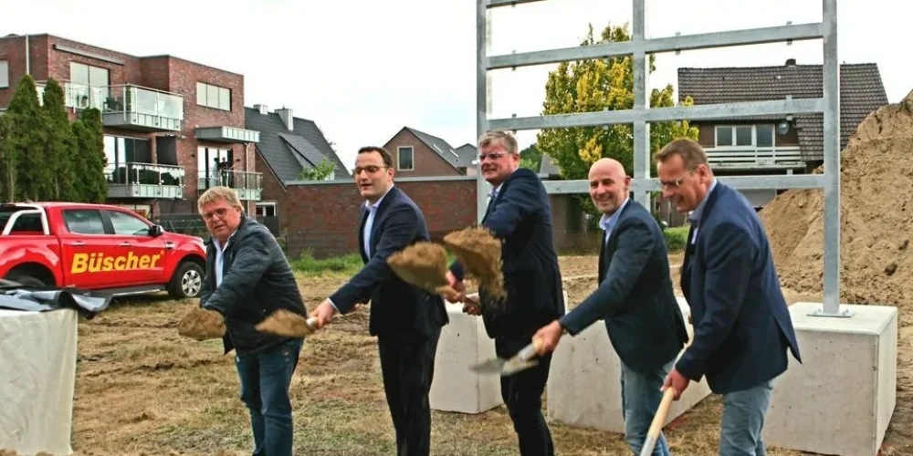 Am Dienstag fand hier unter Anwesenheit von Jens Spahn, Diplom Bauingenieur Alois Lücking, Franz Josef Weilinghoff und den beiden Bauherren Wolfgang und Hans-Jürgen Büscher der erste Spatenstich statt.