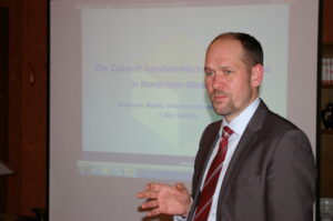 Im Rahmen eines Workshops zum Thema „Die Zukunft handwerklicher Baubetriebe in NRW“ stellte Alexander Kostka von den Bauverbänden Westfalen vor den Baugewerken-Innungen Ahaus, Borken und Bocholt am 07.05.2012 in Südlohn die aktuellen Strukturdaten des Bauhauptgewerbes in NRW vor. Gerade die Unternehmen mit bis zu 19 Beschäftigten haben in den letzten drei Jahren deutlich zugenommen. Derzeit sind ca. 10.000 Betriebe dieser Art in NRW am Markt. Besonders erfreulich ist, dass sich die Eigenkapitalquote der Betriebe in den letzten 10 Jahren mehr als verdreifacht hat auf derzeit durchschnittlich 12,8 % , wobei gleichzeitig die Quote der langfristigen Verbindlichkeiten deutlich abgenommen hat auf derzeit durchschnittlich 12,6 %. Besonders positiv ist ebenfalls die Prognose für das Jahr 2012, wonach der Wohnungsbau in Westdeutschland ein Umsatzplus von 6 % erwartet. Die Erwartungen für den Wirtschaftsbau fallen in Westdeutschland mit einem plus von 4,5 % etwas geringer aus. Diese Entwicklung spiegelt sich insbesondere bei den Wohnungsbau-Genehmigungen bis Ende Juli 2011 im Regierungsbezirk Münster wieder, wonach ein Zuwachs bei den Genehmigungen für ein und zwei Familienhäuser von 11,2 % und bei den Mehrfamilienhäusern sogar um 47,9 % zu verzeichnen ist. Damit liegt der Regierungsbezirk Münster in NRW an der Spitze. Mit einem besonders starken Anstieg der Neubaunachfrage nach ein- und zwei Familienhäusern bis zum Jahre 2020 wird im Großraum Münster gerechnet. Damit liegt einer der interessanten Märkte in diesem Bereich für die Bauunternehmen aus dem Kreis Borken in unmittelbarer Nachbarschaft. Aus einer Umfrage der LBS-Studie „Wohnwünsche NRW 2011“ wird deutlich, dass die Bürger, die in den nächsten 10 Jahren einen Umzug planen, schwerpunktmäßig in ruhige Stadtteillagen (38 %) und Innenstadt/Zentrumsnähe (28 %) umziehen möchten. Hier liegt ebenfalls ein erhebliches Potenzial für Bauunternehmen, wie Obermeister Josef Scharlau betonte. Dies insbesondere mit Blick darauf, dass in dem Altbestand der 6,3 Mio. Wohnungen in NRW, die bis 1977 gebaut wurden, bislang 4,4 Mio. noch nicht saniert wurden. Gleichzeitig sieht das Energiekonzept 2050 der Bundesregierung vor, 80 % Energieeinsparung im Wohngebäudebestand bis 2050 zu erreichen. Ohne einen ausreichenden Neubau und intensivere Bestandssanierung sind diese Entwicklungen und Ziele jedoch nicht zu erreichen. Daher wird seitens der Bauwirtschaft schon seit langem gegenüber der Politik gefordert, eine finanzielle Förderung für den Abriss von Altgebäuden und entsprechenden Neubau zu gewähren. Insgesamt sehen die Baubetriebe im Kreis Borken die künftige wirtschaftliche Entwicklung äußerst positiv, was jedoch nachhaltige stabile politische und finanzielle Rahmenbedingungen erfordert.