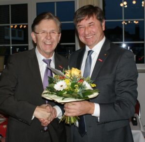 Kreishandwerksmeister Günther Kremer (re.) gratuliert Hans Hund (li.) zur Wahl.