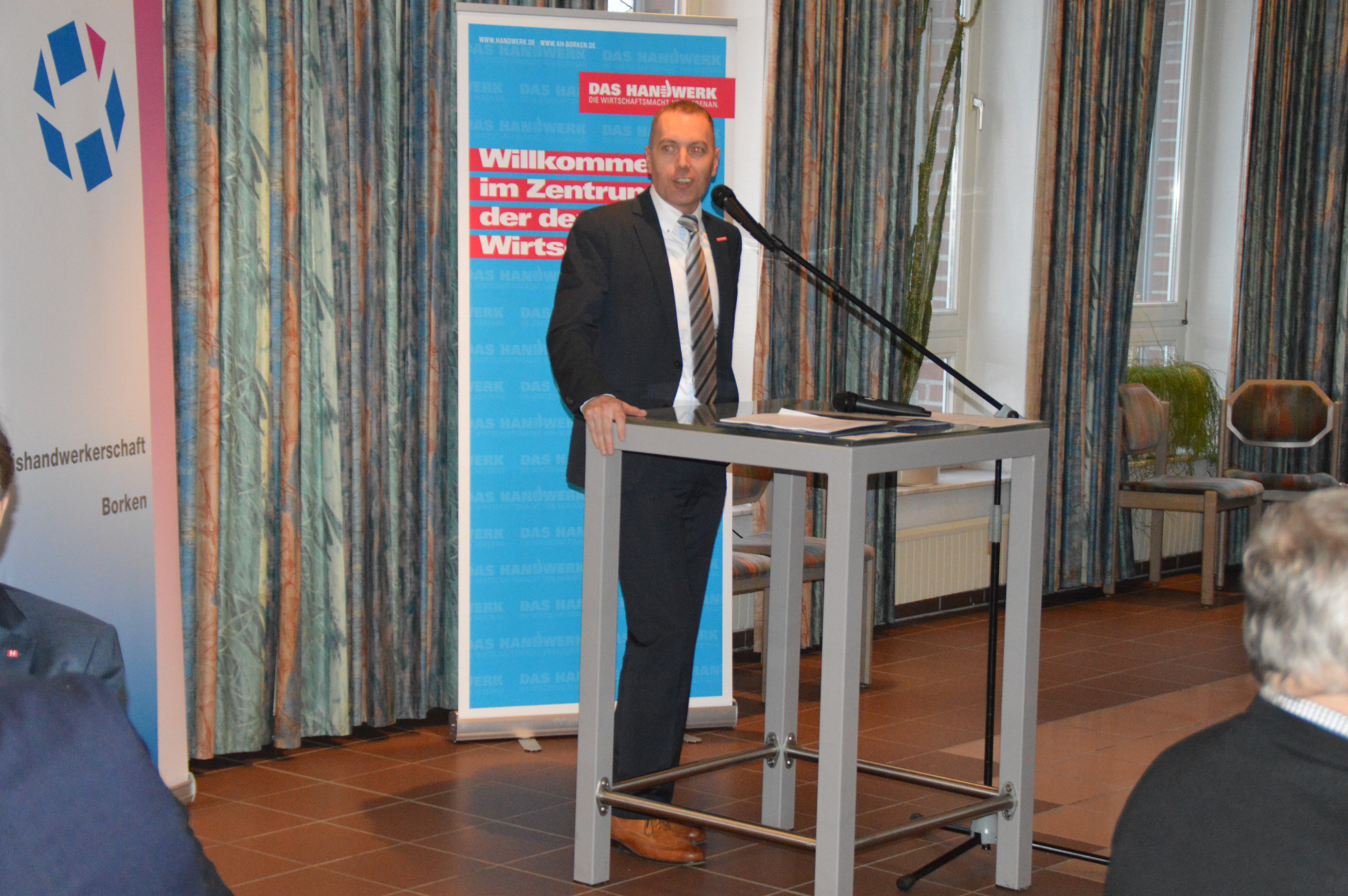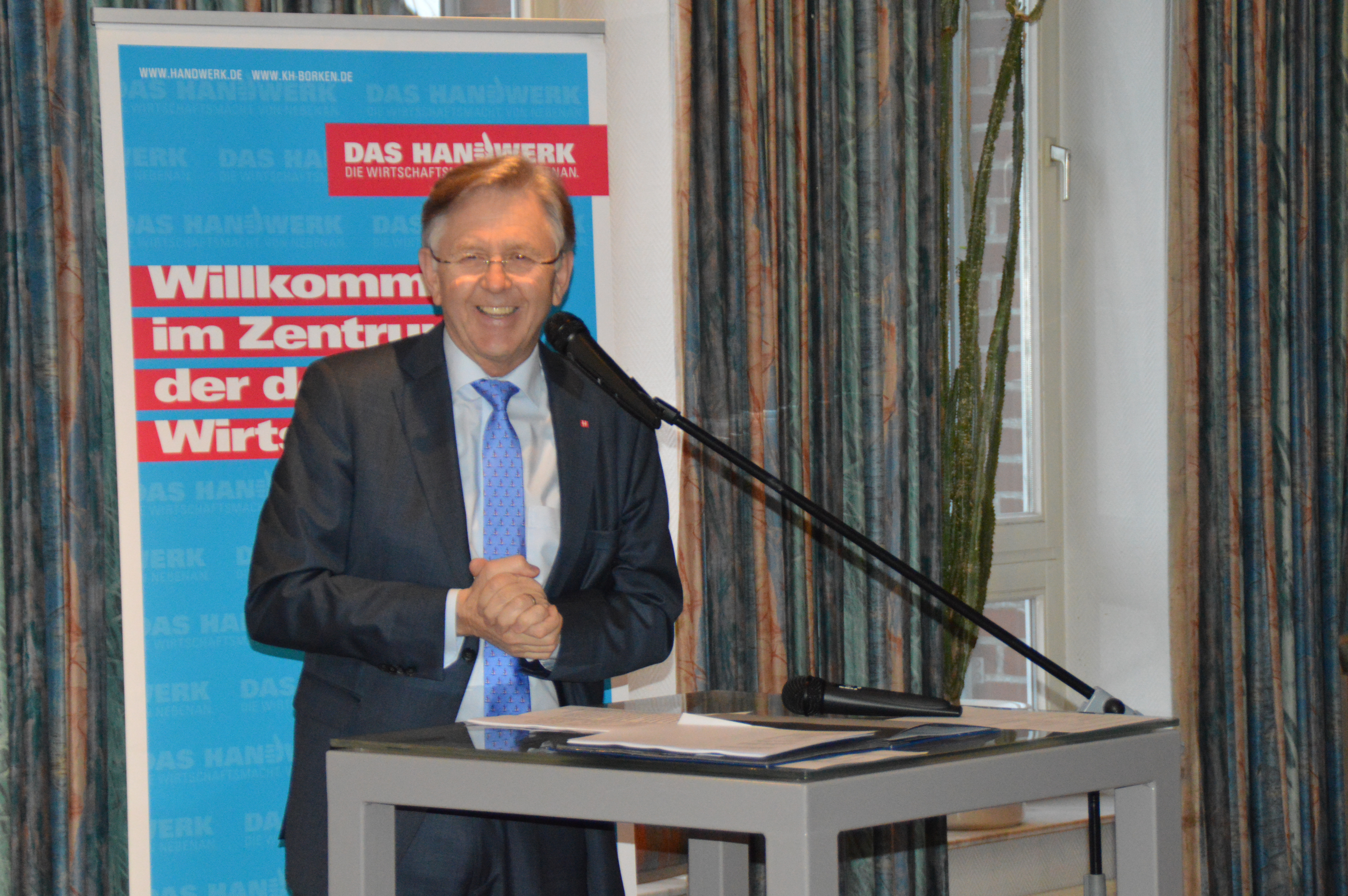 Neben Obermeister Stefan Röring, Kreishandwerksmeister Günther Kremer, Geschäftsführer Daniel Janning, den Mitgliedsbetrieben aus der Innung und zahlreichen Ehrengästen, gratuliert auch Ulrich Kipp, Leiter des Berufskollegs für Technik Ahaus als diesjähriger Festredner der Lossprechung den Absolventen ganz herzlich zu diesem Erfolg. Das Grußwort hält in diesem Jahr der stellvertretende Bürgermeister der Stadt Gronau, Herr Werner Bajorath.