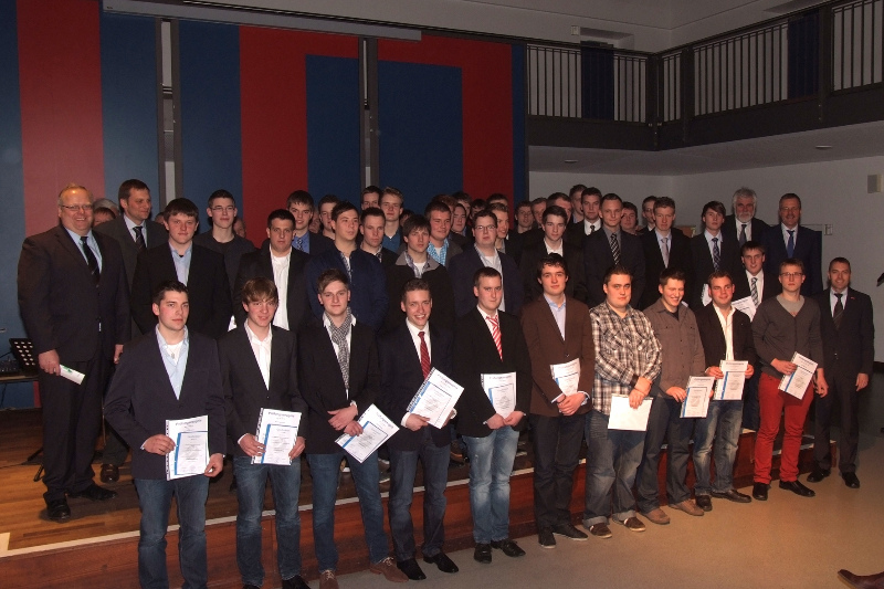 Sichtlich erfreut begrüßte am 01.02.2013 der Obermeister der Innung für Land- und Baumaschinentechnik Westmünsterland im Kreis Borken und Coesfeld, Alfred van den Berg, die erfolgreichen Land- und Baumaschinenmechaniker aus der Winter-Gesellenprüfung 2012/2013 und der Sommer-Gesellenprüfung 2012 zur diesjährigen feierlichen Lossprechung im Berufskolleg für Technik Ahaus.