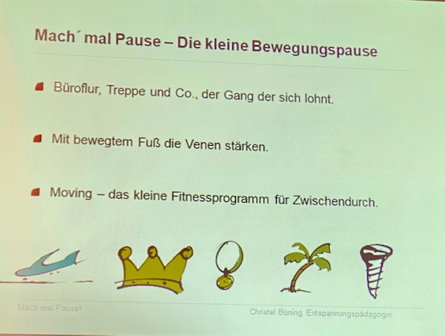 Frau Büning gab allen Teilnehmerinnen wertvolle Tipps für eine erholsame Pause mit auf den Weg und stellte Moving – das kleine Fitnessprogramm für Zwischendurch – vor.