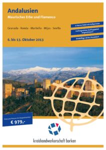 Auch in diesem Jahr laden wir Sie zu einer Mitgliederreise, diesmal nach Andalusien recht herzlich ein. Wir würden uns freuen, wenn Sie, Ihre Familienangehörigen, Freunde und Bekannte Interesse an dieser Reise finden würden und freuen uns auf Ihre Anmeldung. Die Reise findet statt vom