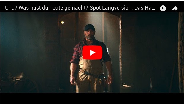 Ab sofort starten die neuen, bundesweiten TV-Spots der Imagekampagne des deutschen Handwerks. Im Zentrum: die Frage „Und? Was hast du heute gemacht?“. Hier gibt es den Spot in einer Langversion. Die Leitfrage der diesjährigen Kampagne des Handwerks „Und? Was hast du heute gemacht?“ filmisch umgesetzt. – © Das Handwerk / Screenshot: DHZusammen mit dem Werbefilmregisseur Tore Frandsen entstand der neue TV-Spot der Imagekampagne im Auftrag des Zentralverbands des Deutschen Handwerks (ZDH). Die Ausstrahlung beginnt am 16. Februar – sowohl online als auch im TV. Bis zum 1. März läuft der Spot in den Werbesequenzen von RTL, SAT.1, VOX, Super RTL, RTL 2, ProSieben, n-tv, DMAX, Welt, Sport1 und ARD. Begleitet wird er durch bundesweite Plakate, Infoscreens und Aufklebern auf Bussen. Die Botschaft: Wer berufliche Erfüllung sucht, ist im Handwerk richtig.