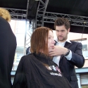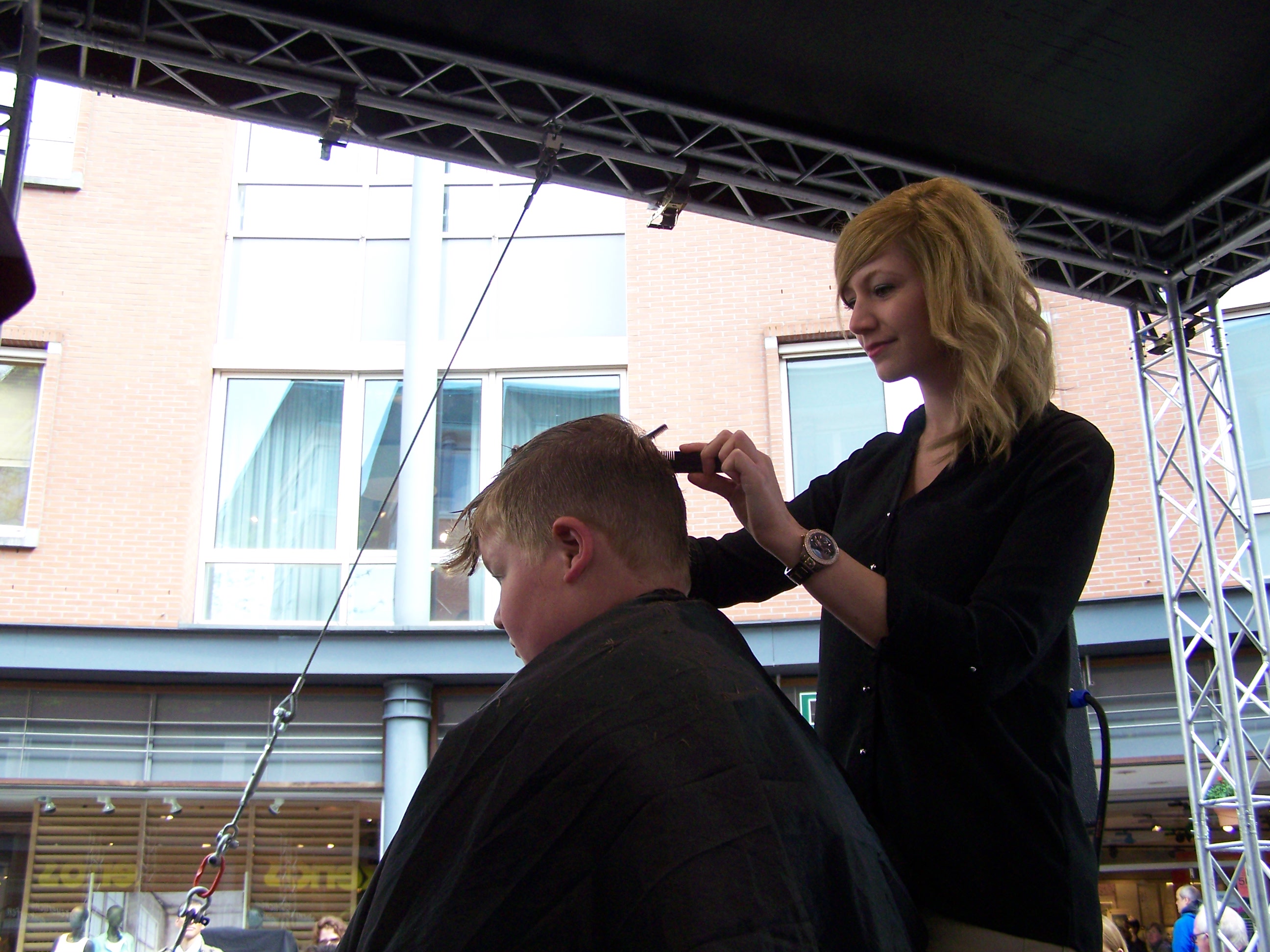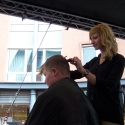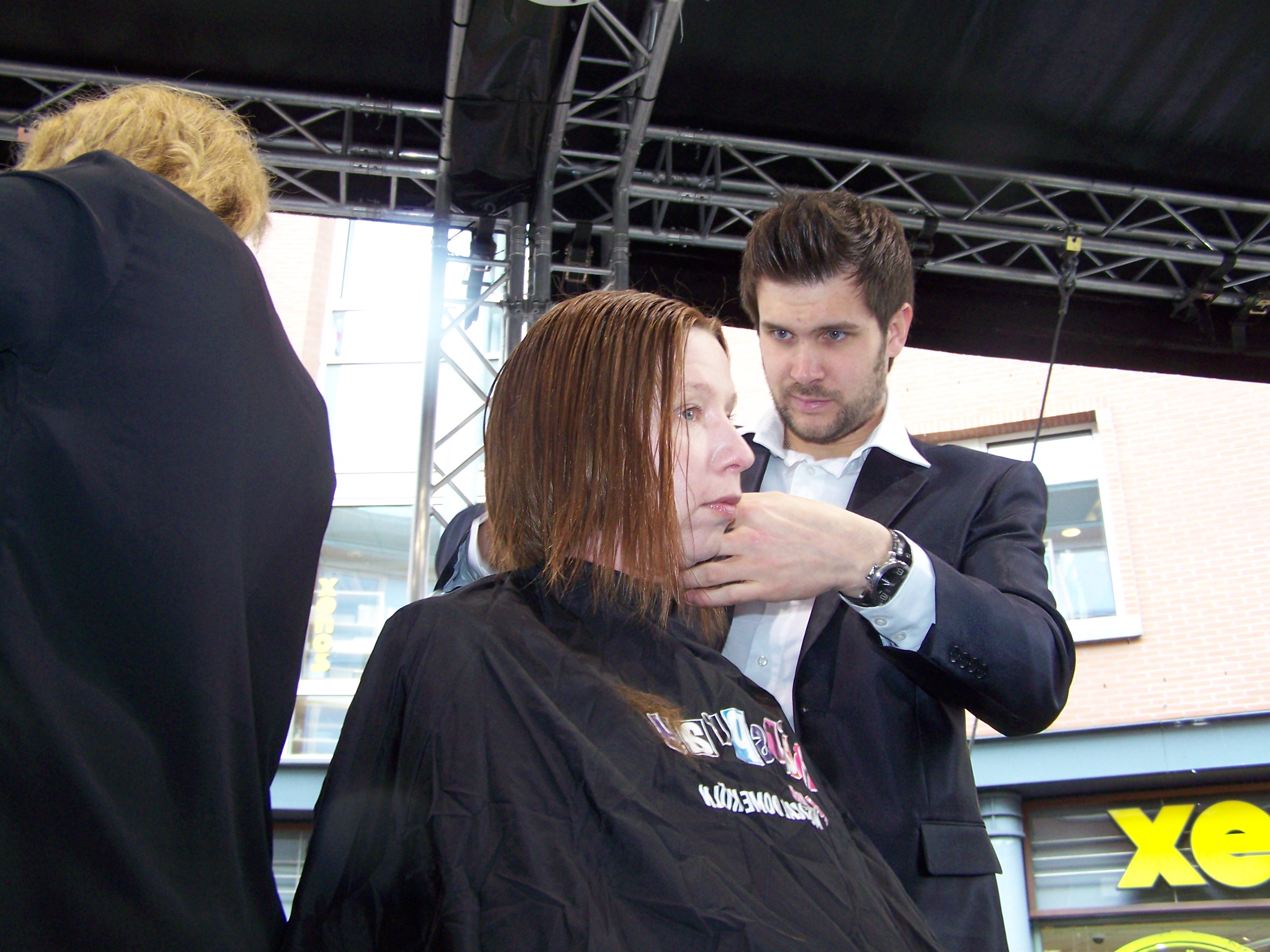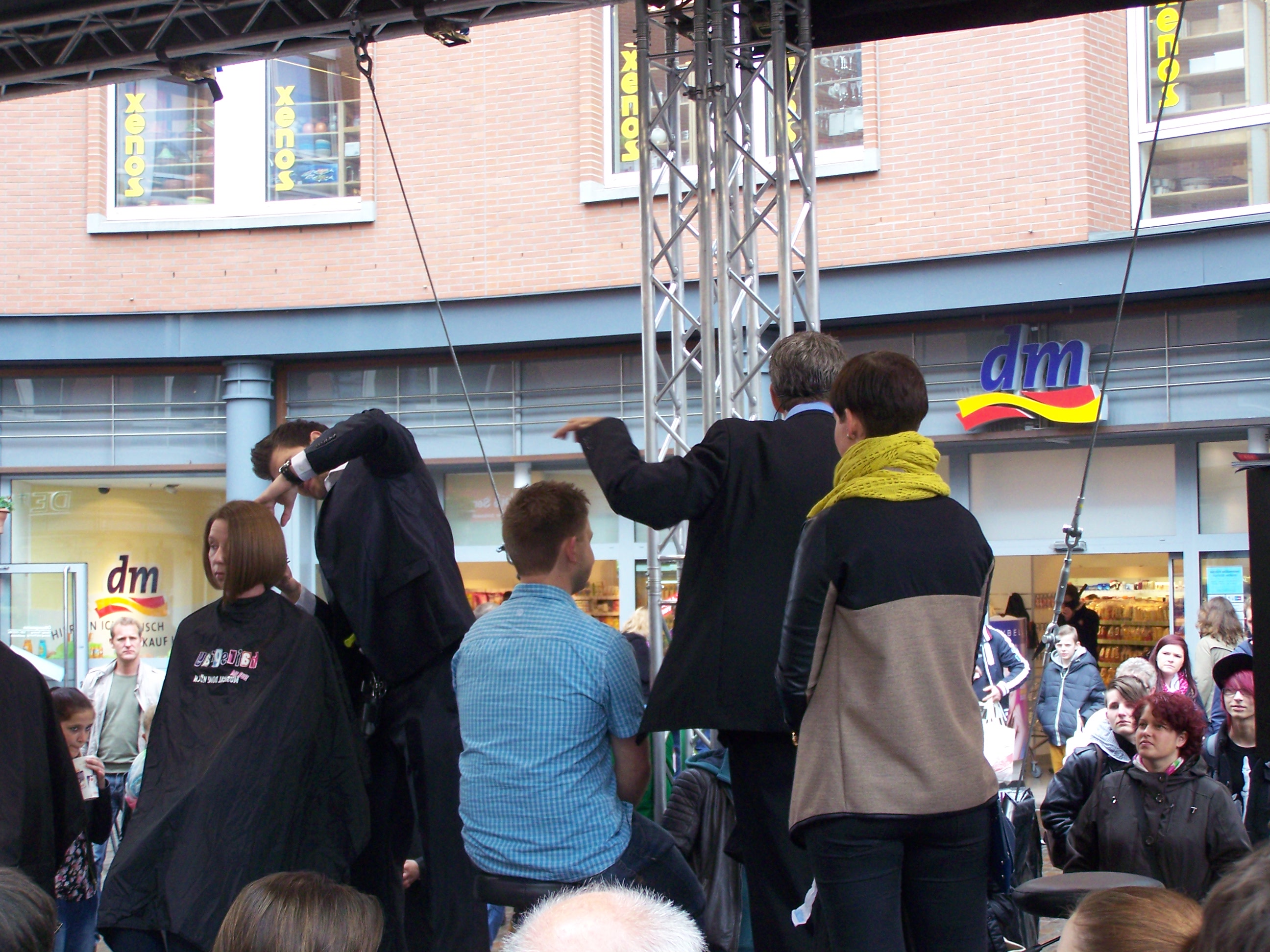 Das Team hatte seinen Pavillon am Neutor in der Bocholter Innenstadt aufgebaut und ließ sich auch von einigen aufkommenden Regenschauern nicht abschrecken, genauso wenig, wie die vielen Besucher, die die praktischen Vorführungen des Schaufrisierens auf der Bühne gebannt verfolgten. Sie konnten live miterleben, wie Friseurobermeister Manfred Wagner, Jan-Niklas Wagner und Laura Sievers Frisuren vorführten, die zurzeit „in“ sind.