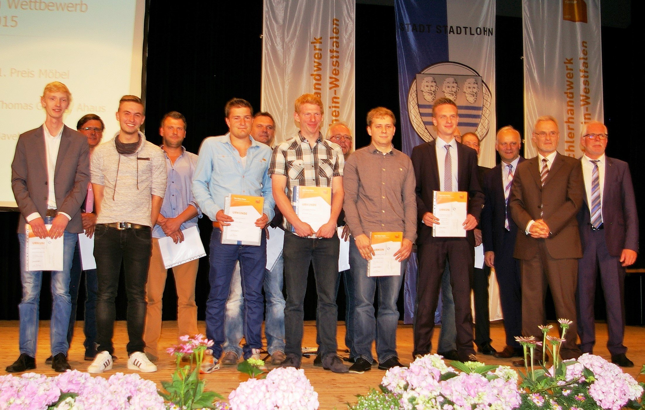 Dennis Elfering, Graes (Tischlerei Albers GmbH, Ahaus), Ann-Kathrin Jost, Legden (Akademie Klausenhof gGmbH, Rhede), Kevin Kottig, Gronau (Klümper Fensterbau GmbH, Gronau), Patrick Pieper, Ahaus (Akademie Klausenhof GmbH, Hamminkeln), Antonius Ross, Gescher (Tischlerei Schülting GmbH & Co. KG, Gescher), Arne Vennhoff, Ahaus (Dula-Werke Dustmann & Co. GmbH, Ahaus), Dennis Wullers, Stadtlohn (Küchenhaus Krumme GmbH, Stadtlohn), Anton Cizonok, Vreden (Berufsbildungsstätte Westmünsterland GmbH, Ahaus), Dominik Kustos, Gronau (Kötter-Mers GmbH, Gronau), René Leichtweiß, Rhede (Berufsbildungsstätte Westmünsterland GmbH, Ahaus), Lukas Nienhaus, Dorsten (Berufsbildungsstätte Westmünsterland GmbH, Ahaus), Viktor Parkhamchuk, Ahaus (Berufsbildungsstätte Westmünsterland GmbH, Ahaus), Tobias Wirtz, Vreden (Berufsbildungsstätte Westmünsterland GmbH, Ahaus), Fabian Abbing, Vreden (Terhalle Fenster und Fassaden GmbH & Co. KG, Ahaus), Jan-Hendrik Achteresch, Gronau (Depenbrock GmbH & Co.KG, Heek), Dominik Bay, Vreden (Bröcking Fenster GmbH & Co. KG, Vreden), Tobias Berges, Gronau (Ladenbau Innenausbau Hemling GmbH, Ahaus), Tim Blömer, Heek (Alma-Küchen GmbH & Co. KG, Ahaus), Laura Böcker, Ahaus (Tenbrink Ladeneinrichtungen GmbH, Stadtlohn), Maurice Bokje, Gronau (Schmeing GmbH, Gronau), Niklas Bone, Velen (Antonius Schultewolter, Velen), Robin Brandherm, Ahaus (Wessendorf Fenster GmbH & Co. KG, Ahaus), Rainer Büning, Ahaus (Dula-Werke Dustmann & Co. GmbH, Ahaus), Robin Büsker, Velen (8Bernhard Twents GmbH, Gescher), Timo Dues, Ahaus (Dula-Werke Dustmann & Co. GmbH, Ahaus), Marvin Dünne, Stadtlohn (Reinhard Suttrup, Stadtlohn), Viktor Ernst, Schöppingen (Heinz Hiller GmbH, Schöppingen), Tobias Fedder, Gescher (Bernhard Twents GmbH, Gescher), Patrick Gassner, Gronau (Alma-Küchen GmbH & Co. KG, Ahaus), Tim Gebing, Vreden (Fenestra Fensterbau Gericks GmbH, Vreden), Thomas Gerling, Ahaus (Haveloh GmbH, Ahaus), Marcel Gewers, Vreden (Dula-Werke Dustmann & Co. GmbH, Vreden), Artur Haar, Ahaus (Holztechnik Schmeing GmbH & Co. KG, Ahaus), Hendrik Hackenfort, Ahaus (Wilhelm Dieker + Sohn GmbH, Ahaus), Marcel Haupt, Ahaus (Bernd Menker und Frank Menker, Ahaus), Florian Heidbrink, Asbeck (Hubert Uppenkamp GmbH, Legden), Alexander Hemker, Ahaus (Terhalle Schreinerei GmbH, Ahaus), Niklas Hemker, Legden (Gebr. Vinkelau GmbH, Legden), Henrik Hertog, Gescher (Wilhelm Elsing GmbH, Stadtlohn), Daniel Hölker, Vreden (Hermann Meyer, Vreden), Alexander Hollad, Ahaus (Ladenbau Innenausbau Hemling GmbH, Ahaus), Tobias Holtkamp, Alstätte (Terhalle Fenster und Fassaden GmbH & Co. KG, Ahaus), Leo Hummels, Velen-Ramsdorf (Tenbrink Ladeneinrichtungen GmbH, Stadtlohn), Michell Kasparek, Stadtlohn (Stadtlohner Treppenbau GmbH, Stadtlohn), Christian Kauling, Schöppingen (Gebr. Vinkelau GmbH, Legden), Vincent Kippert, Südlohn (O. Kemper GmbH, Südlohn), Frederic Klein, Vreden (Akademie Klausenhof gGmbH, Rhede), Yannik Klöpper, Asbeck (Tischlerei K & R Wegener GmbH & Co. KG, Ahaus), Sven Könning, Ahaus (Tenhumberg GmbH, Vreden), Ole Laing, Wessum (Holztechnik Schmeing GmbH & Co. KG, Ahaus), Nils Lanze, Borken (Bernhard Twents GmbH, Gescher), Alexander Lebedev, Ahaus (Oliver Kock, Ahaus), Pascal Lohoff, Gronau (Volbert Holz in Form GmbH, Gronau), Philip Müller, Gronau (Herport Innenausbauelemente GmbH & Co. KG, Ahaus), Nils Nagenborg, Vreden (Dula-Werke Dustmann & Co. GmbH, Vreden), Vernon Rolf, Gescher (Tischlerei Schülting GmbH & Co. KG, Gescher), Kai Säbisch, Vreden (Dula-Werke Dustmann & Co. GmbH, Vreden), Leon Schneider, Ahaus (Alma-Küchen GmbH & Co. KG, Ahaus), David Schüring, Oeding (Holzvision GmbH & Co. KG, Südlohn), Nico Soete, Legden (Ladenbau Innenausbau Hemling GmbH, Ahaus), David Suttrup, Stadtlohn (Tenbrink Ladeneinrichtungen GmbH, Stadtlohn), David Temminghoff, Vreden (Tischlerei Albers GmbH, Ahaus), Sven Tenhumberg, Ottenstein (Terhalle Schreinerei GmbH, Ahaus), Tim Veldscholten, Stadtlohn (Bücker Raumkonzepte GmbH, Stadtlohn), Leon Verwohld, Vreden (Dula-Werke Dustmann & Co. GmbH, Vreden), Johannes Vornholt, Südlohn (Tenbrink Ladeneinrichtungen GmbH, Stadtlohn), Kevin Wesseler, Ottenstein (Wessendorf Fenster GmbH & Co. KG, Ahaus), Yvette Wewers, Vreden (OBV Objektbau Bomers GmbH, Vreden), Florian Wierling, Heek (Kaiser & Probst GmbH & Co. KG, Heek), Lukas Wigger, Heek (Dula-Werke Dustmann & Co. GmbH, Ahaus)