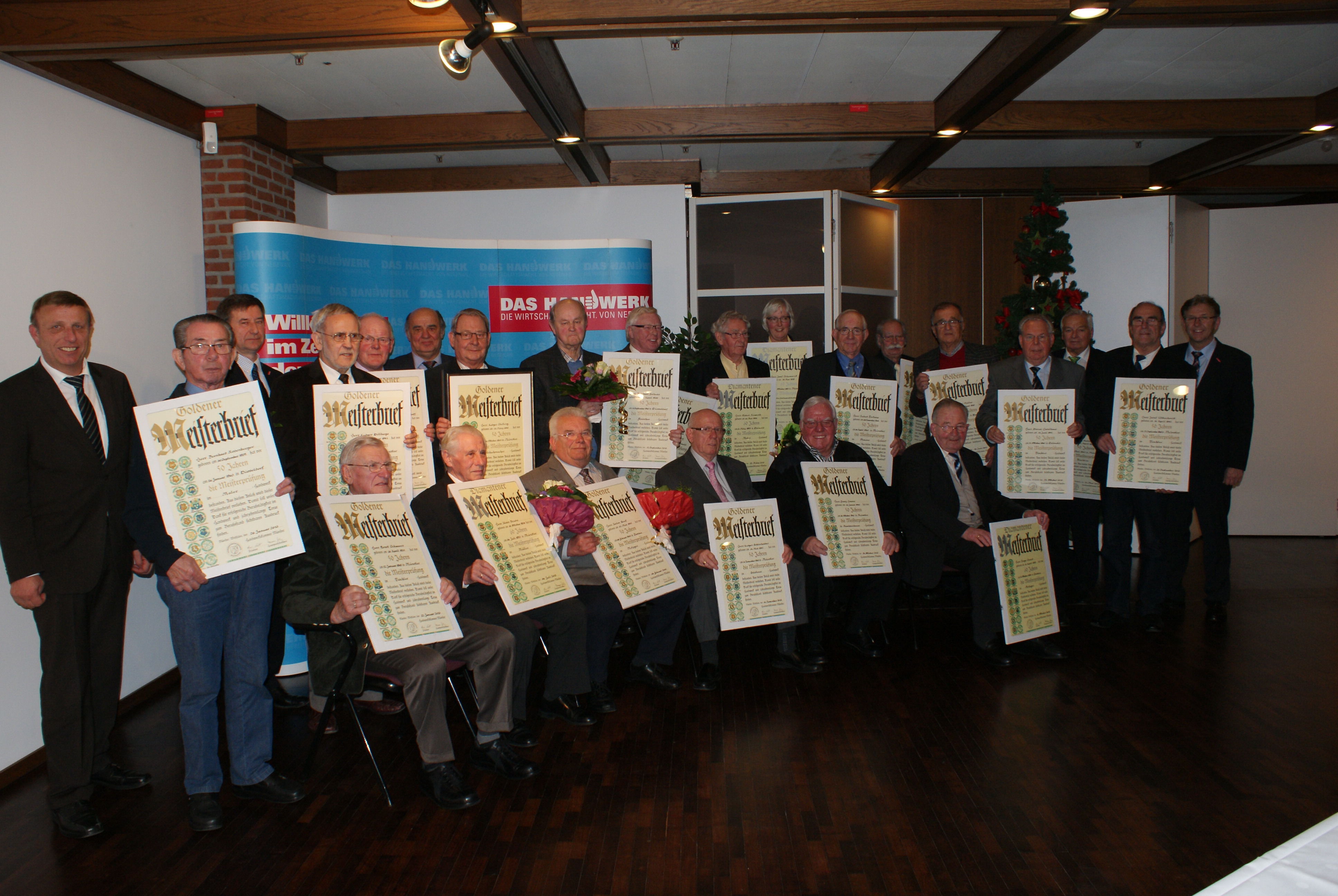 53 Goldene und Diamantene Meisterbriefe wurden am 27.11.2013 im Borkener Vennehof feierlich an verdiente Meister für ihre Arbeit, ihren Einsatz und das Engagement für das Handwerk und für die Ausbildung des Berufsnachwuchses überreicht.