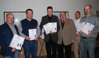 Erweist sich ein Brot über 3 Kalenderjahre in Folge konstant als „sehr gut“, wird hierfür die GOLD-Auszeichnung des IQBack in Form einer gesonderten, besonders wertigen Urkunde vergeben. In diesem Jahr wurden während einer kleinen Feierstunde im Saal des Gasthauses „Pannen-Schulte“ in Wüllen folgende Bäcker die Goldurkunde als Anerkennung der gleichbleibenden sehr guten Qualität, vom Innungsobermeister Kappelhoff und Geschäftsführer der Kreishandwerkerschaft Borken Daniel Janning überreicht an:
