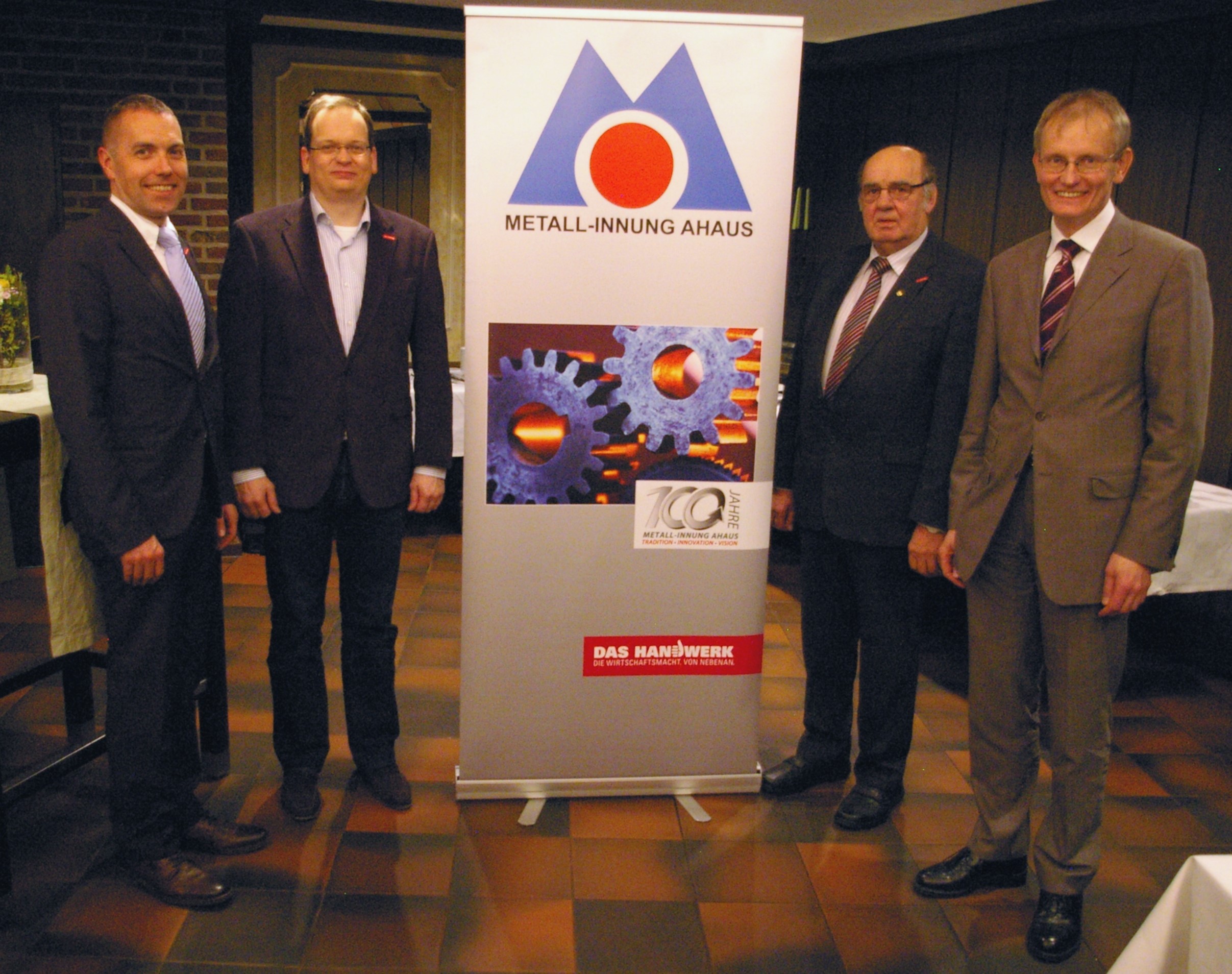 Nachdem der bisherige Obermeister der Metall-Innung in Ahaus, Herr Alfred Marx vom Unternehmen MEM Maschinenbau GmbH in Ottenstein aus Altersgründen bei der Innungsversammlung am 12. April 2016 nicht zu den turnusgemäßen Neuwahlen als Obermeister erneut angetreten ist, wurde Thomas Lansing aus Vreden von der Firma LANSING Metallbau GmbH & Co. KG zum neuen Obermeister gewählt.Alfred Marx hatte sich in besonderem Maße für die Innung engagiert und wurde im Beisein des Kreisdirektors Dr. Hörster gebührend verabschiedet. In seiner Ansprache hob Herr Dr. Hörster insbesondere hervor, dass das Münsterland und insbesondere der Kreis Borken durch den Mittelstand und Handwerksbetriebe geprägt ist und dadurch Bestwerte bei den Beschäftigungszahlen, der wirtschaftlichen Stabilität und der Lebensqualität erzielt. Er betonte den eindrucksvollen Werdegang von Herrn Marx, da dieser aus kleinen Anfängen heraus sich selbstständig gemacht hat und seine Firma bis heute erfolgreich weiterentwickelt hat. Derzeit sind in der Firma MEM ca. 65 Personen beschäftigt. Auch im Namen des Landrates Dr. Zwicker überbrachte er Grüße und bedankte sich persönlich für die lange, gute und vertrauensvolle Zusammenarbeit.