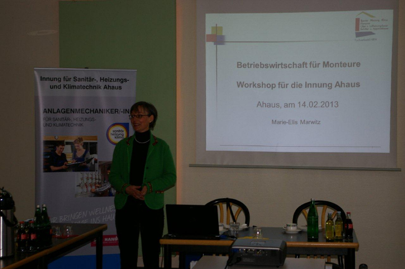 Die Innung für Sanitär-, Heizungs- u. Klimatechnik Ahaus organisierte für ihre Innungsmitglieder am 14.02.2013 von 14:00 bis 16:30 Uhr einen Workshop zum Thema „Betriebswirtschaft für Monteure – Der Kundendiensttechniker als Kaufmann und Jurist“.